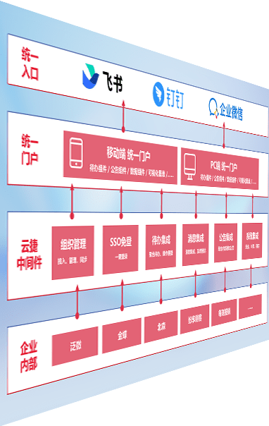 对协作平台提供支持服务,,,,支持企业应用与协作平台对接,,包含组织同步、、、、消息集成、、、待办集成等。。。支持目前主流的协作平台:钉钉、、企微和飞书。。。